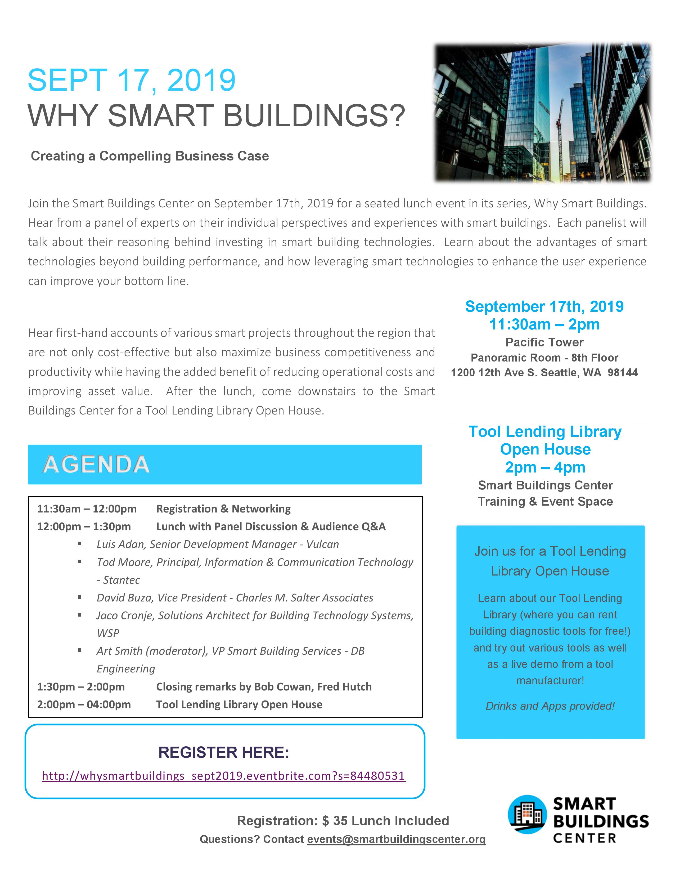 Join us for lunch and hear from unbiased experts in the industry that have real world experience in implementing smart technologies at the ‘Why Smart Buildings? Creating a Compelling Business Case” on September 17th at the Pacific Tower from 11:30am – 2pm. We will also be hosting a Tool Lending Library Open House directly after the event, we hope you can join us!